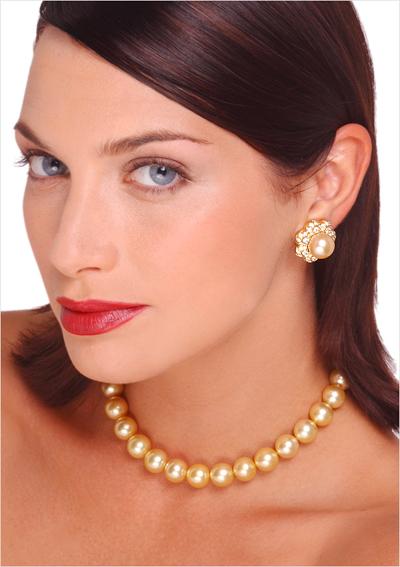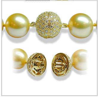 A single strand Australian south sea cultured pearl necklace. Composed of graduated natural color golden Australian cultured pearls measuring from 13 to 14mm completed by a pavé-set ball clasp Length 16 inches.