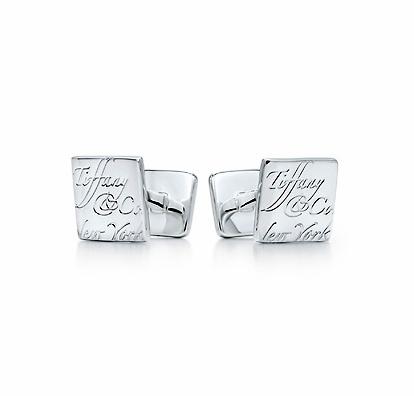 Tiffany Notes Square Cuff Links. An elegant script, inspired by handwritten invitations. Cuff links in sterling silver.